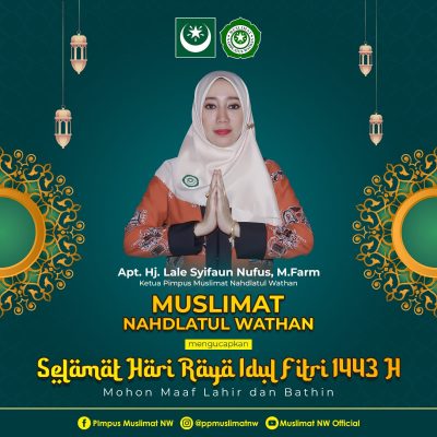Untuk itu marilah manfaatkan momentum Hari raya Idul Fitri di tahun 2022/1443 H ini sebagai moment yang penuh keberkahan tempat kita bermunajah pada Allah SWT terutama pada malam harinya dengan melafazkan “Taqabbalallahu minna wa minkum”, agar kita memperoleh predikat summacumlaude setelah melewati ujian atau menempuh pendidikan di bulan Ramadhan (Syahru at-Tarbiyyah) dan tak lupa pula kita bermunajah semoga Allah SWT melekatkan pada diri kita sikap-sikap “Ing Ngarsa Sung Tulada, Ing Madya Mangun Karsa Serta Tut Wuri Handayani dalam ruang-ruang pegnhidmtan kita termasuk di dalam rumah besar kita bersama yakni “Muslimat NW” yang sama-sama kita cinta ini yang merupakan tempat kita bersekolah sebagai bekal kita dalam menjalani eksistensi kita sebagai Madrasah pertama dan mencapai predikat menjadi sebaik-sebaik perhiasan dunia. Aamiin Ya Rabbal Aalamiin.