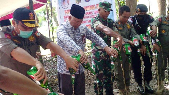 Dilokasi Bupati menyampaikan apresiasi kepada SatPol-PP beserta jajaran Aparat Penegak Hukum (APH), TNI, POLRI, dan Kejaksaan yang telah membantu mengamankan dan melakukan pemusnahan miras.