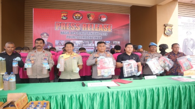 Kapolres Lombok Timur dalam konferensi persnya dihadapan sejumlah wartawan menyampaikan bahwa pada Operasi Pekat Rinjani 2023 kali ini pihaknya bersama jajaran telah berhasil mengungkap 32 Laporan Polisi diantaranya 5 Laporan Polisi tentang Perjudian dan 27 Laporan Polisi tentang Miras. Dari Laporan Polisi tersebut terdapat 48 orang tersangka.