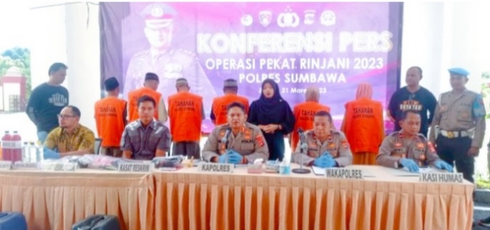 Dalam Hasil Operasi Pekat dengan menghadirkan para tersangka dan barang bukti ini digelar dalam jumpa pers, Jumat (31/3/23), yang di pimpin langsung oleh Kapolres Sumbawa Polda NTB, AKBP Henry Novika Chandra, didampingi wakapolres Kompol Rafles P. Girsang SIK, Plh. Kasat Reskrim IPTU Mochamad Ramdhani, Kasat Res Narkoba, IPTU Malaungi, dan Plh. Kasi Humas, IPDA Dwi Nuryanto.
