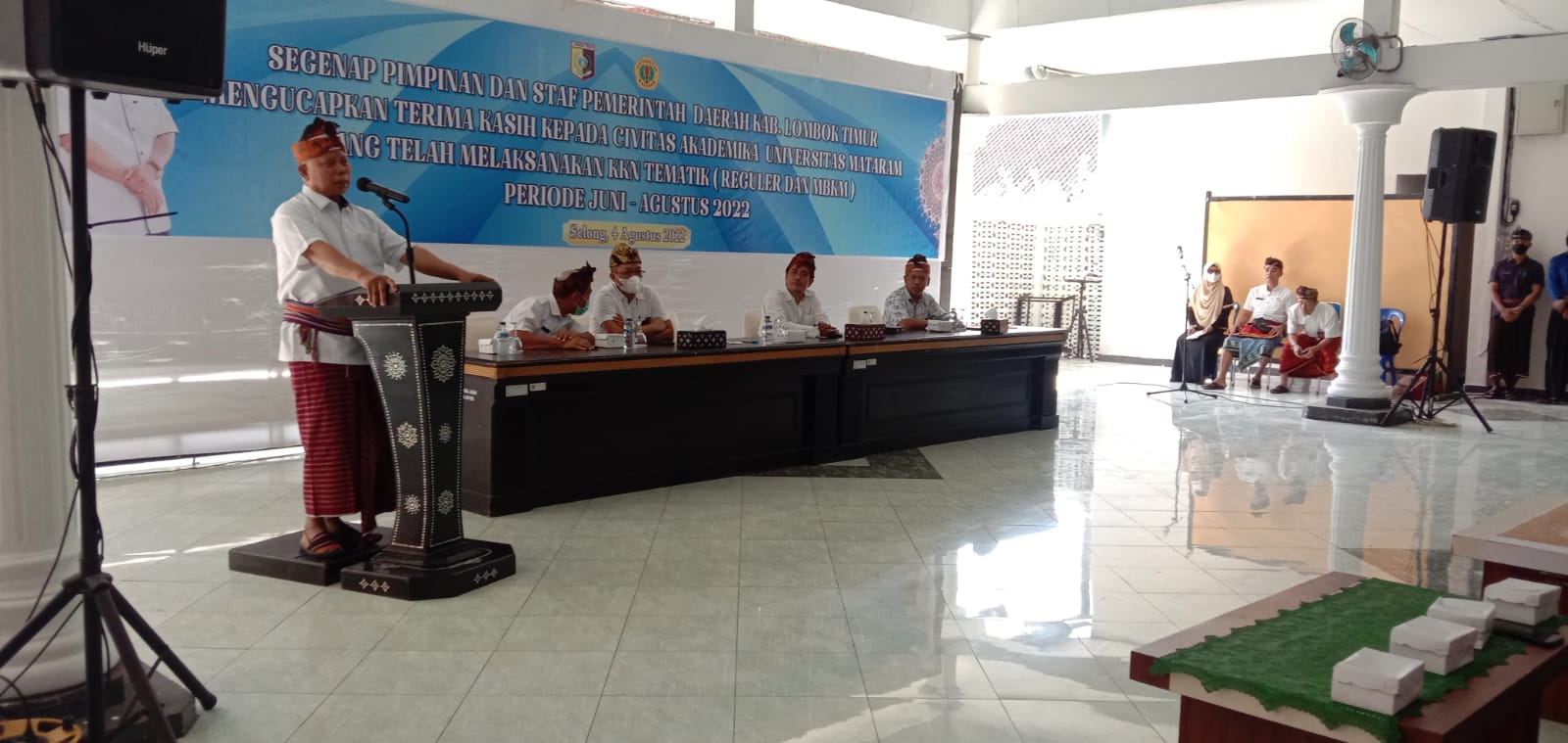 Ketua Pusat Layanan KKN LPPM Unram Islamul Hadi sebagai pendamping Mahasiswa KKN menyampaikan ucapan terima kasih kepada Pemerintah Lombok Timur yang telah menerima mahasiswa Unram melaksanakan KKN di daerah ini.