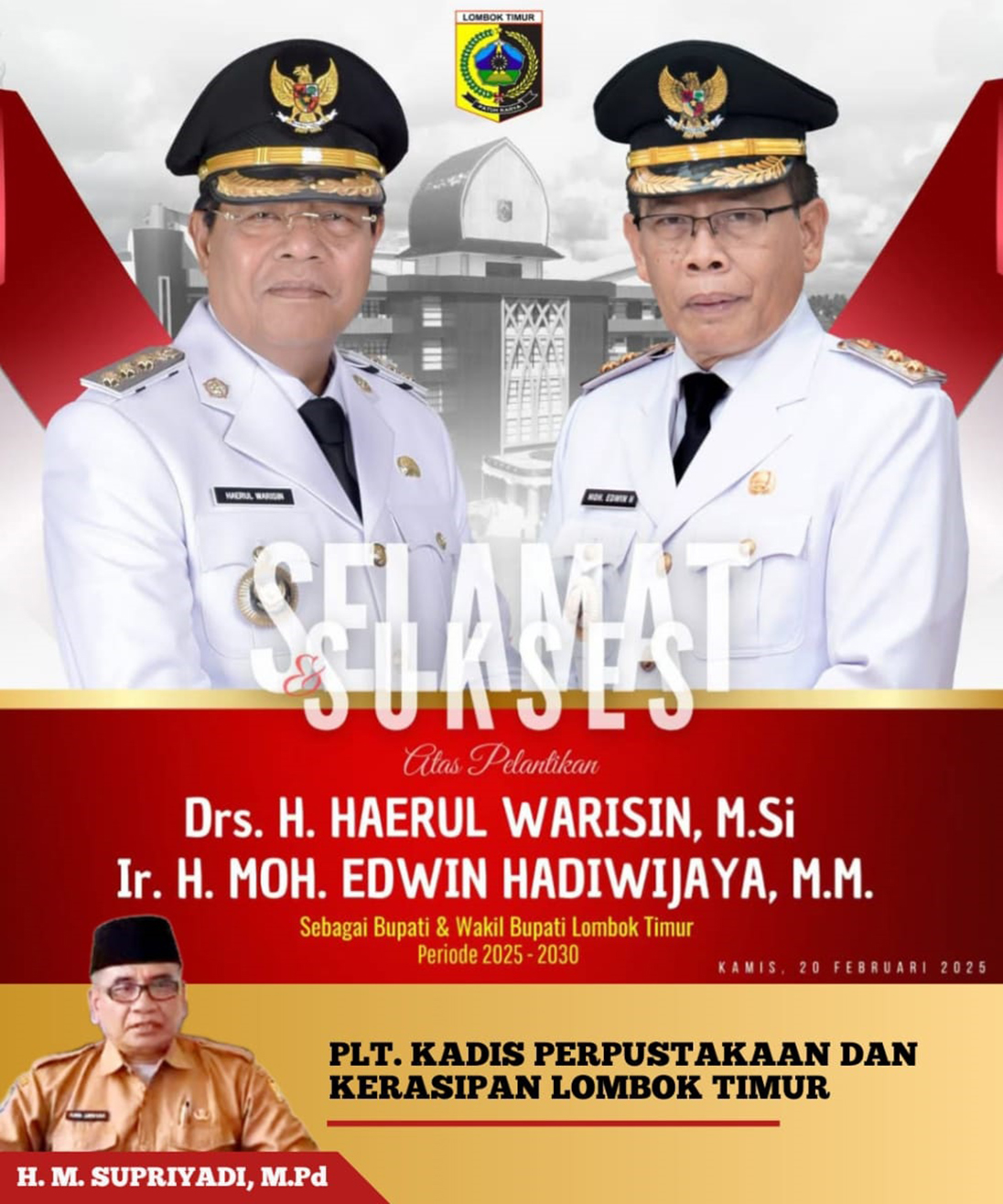 Dinas Perpustakaan Dan Kearsipan Daerah Lombok Timur Mengucapkan Selamat Atas Dilantik Bapak H Haerul Warisin Dan H Moh Edwin Hadiwijaya Sebagai Bupati Dan Wakil Bupati Lotim Periode 2025-2030