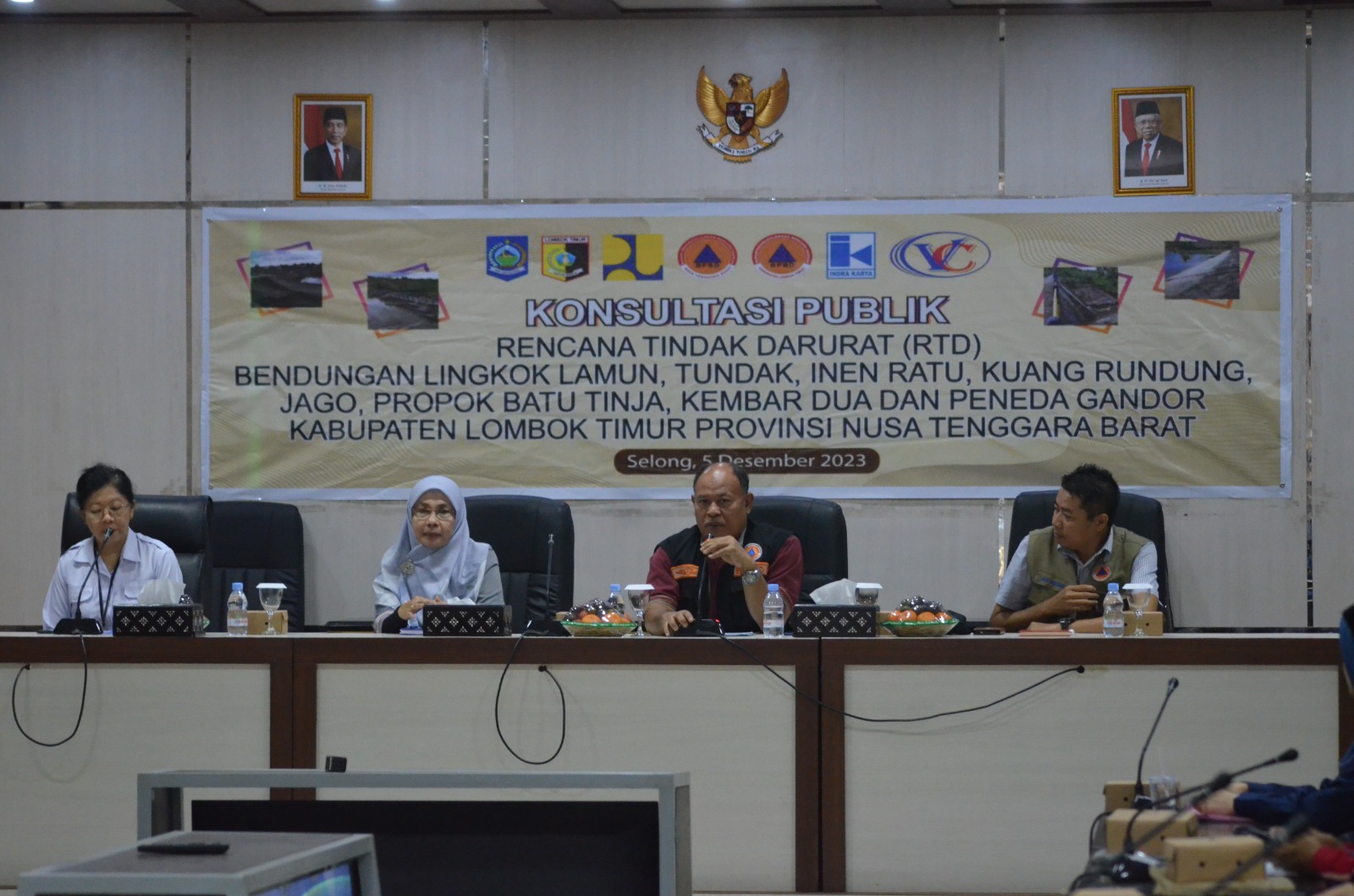 Terkait dengan hal tersebut, BPBD Provinsi NTB melalui Bidang Pencegahan dan Kesiapsiagaan bekerjasama dengan Balai Wilayah Sungai Nusa Tenggara I (BWS NT I) mengadakan Rencana Tindak Darurat (RTD) Bendungan Lingkok Lamun, Tundak, Inen Ratu, Kwang Rundun, Jago, Propok Batu Tinja, Kembar Dua dan Penedagandor, Kabupaten Lombok Timur yang berlangsung di Rupatama I Kantor Bupati pada Selasa pagi, (05/12).