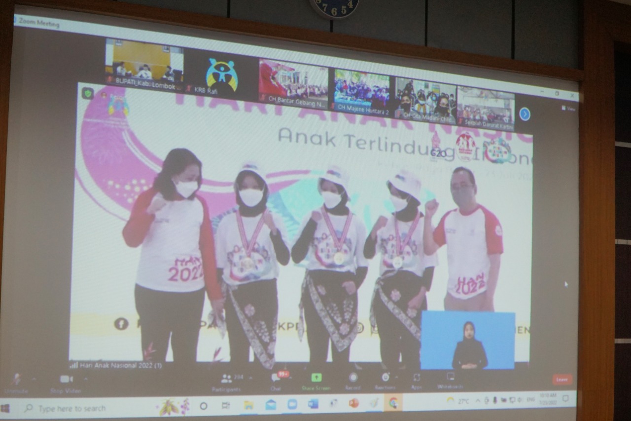 Lombok Timur SR – Peringatan Hari Anak Nasional 2022 yang berlangsung secara hybrid diikuti pula Bupati Lombok Timur H.M. Sukiman Azmy bersama sejumlah pimpinan OPD lingkup Pemerintah Kabupaten Lombok Timur pada Sabtu (23/7). Tahun ini Lombok Timur mengikuti peringatan Hari Anak Nasional sebagai salah satu kabupaten layak anak Pratama seperti yang telah diumumkan Kementerian Pemberdayaan Perempuan dan Perlindungan Anak (PPPA) sehari sebelumnya.