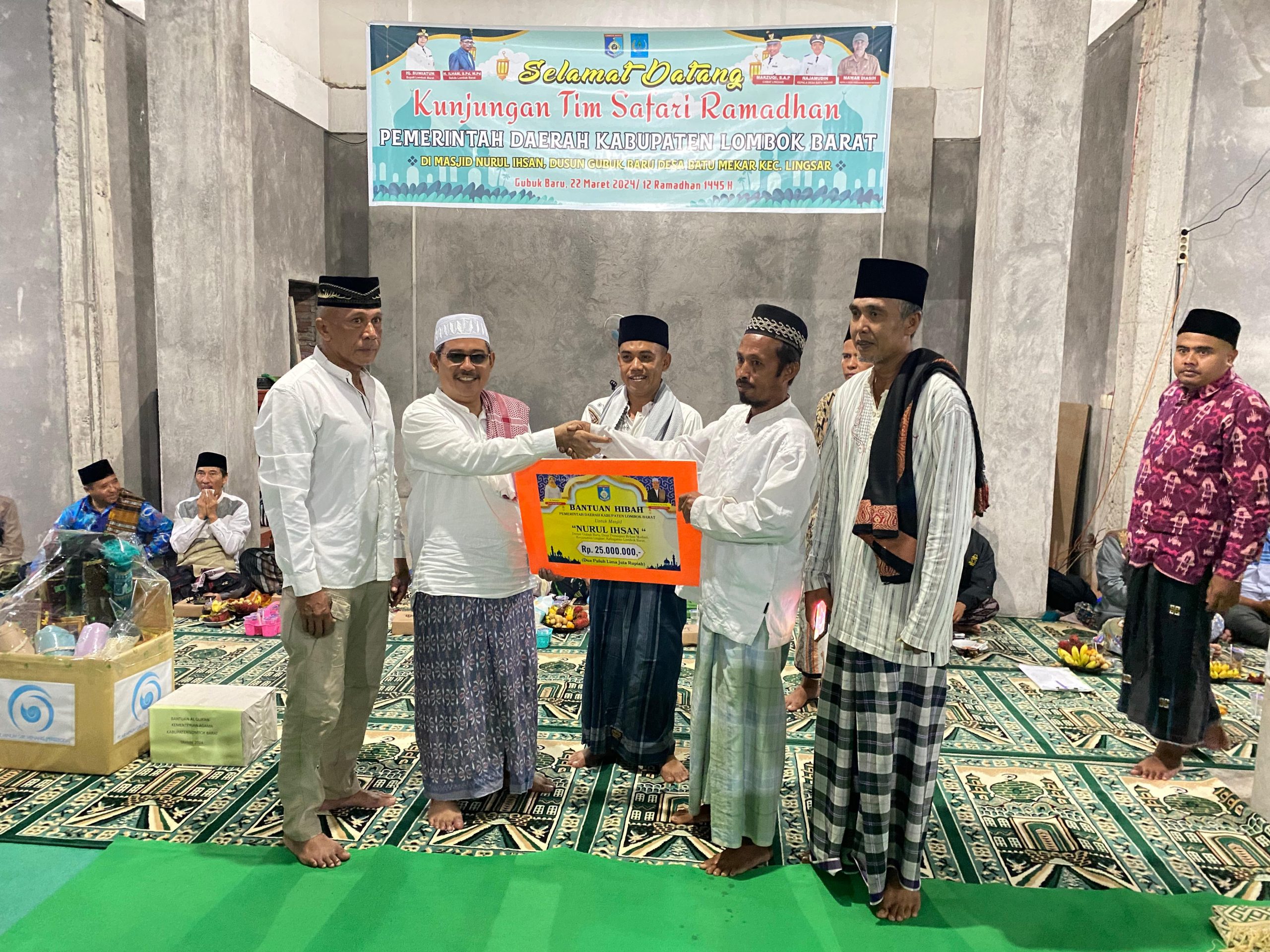 Diakhir kegiatan Safari Ramadhan ini Sekda Lobar H. Ilham menyerahkan Bantuan Hibah dari Pemda untuk Masjid Nurul Ihsan Dusun Gubuk Baru, Desa Persiapan Madani Kecamatan Lingsar sebesar 25 juta dan Sekda Lobar bersama beberapa Kepala OPD secara pribadi menyumbang semen berjumlah 155 sak. (W@N)