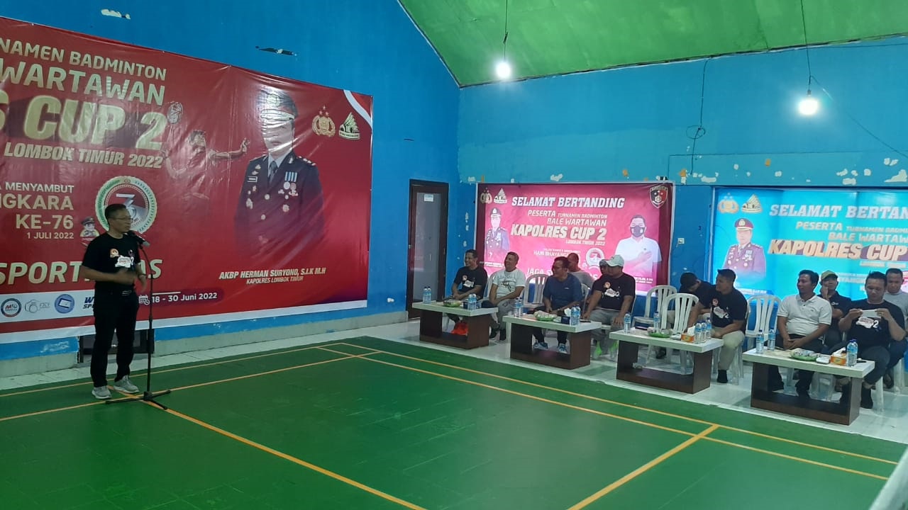 Lombok Timur SR – Turnamen Badminton Kapolres Cup 2 dalam rangka menyambut Hari Bhayangkara ke – 76, dibuka Kapolres Lombok Timur, AKBP Herman Suriyono, bertempat di gedung Bale Wartawan Lotim, Sabtu (18/06)