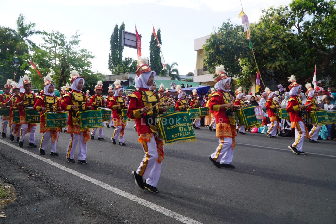 Lombok Timur SR – Pemerintah Kabupaten Lombok Timur menggelar Lomba drumband dalam semarak HUT ke 77 RI pada Selasa (23/8). Tabuhan drum ditingkahi beragam alat musik melodi memenuhi udara sepanjang jalan TGKH. Zainudin Abdul Majid, mulai dari Pusat Pertokoan Pancor hingga Taman Rinjani Selong. Terik matahari tengah tak mempengaruhi semangat masyarakat untuk menyaksikan secara langsung sumber suara. Masyarakat, selain berkerumun di sekitar panggung kehormatan di Taman Rinjani Selong juga berbaris di sepanjang rute yang dilewati 16 peserta.