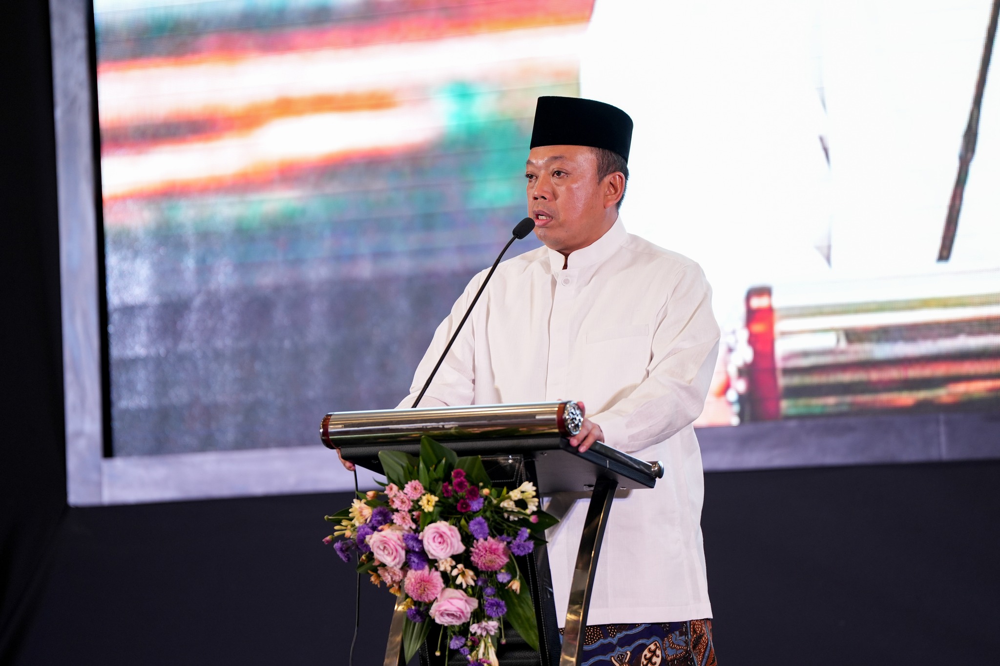 Nusron menyampaikan salam Presiden Prabowo Subianto yang tidak bisa menghadiri acara Hadi Nw dan Mukernas PBNW XV 2025.