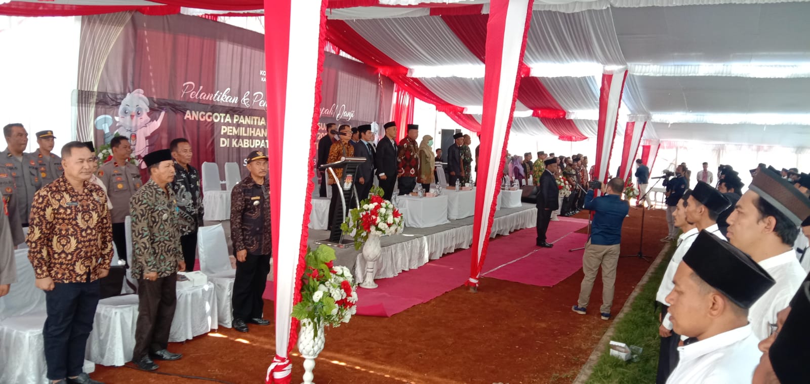 Ketua KPU Lotim Dr.M.Junaidi dalam sambutannya usai pelantikan dan pengambilan sumpah jabatan mengingatkan kepada semua PPS agar tetap berpegang pada undang – undang yang berlaku terutama PKPU 8 Tahun 2022.
