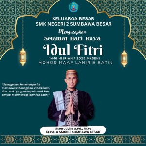 KELUARGA BESAR SMKN 2 SUMBAWA MENGUCAPKAN SELAMAT IDUL FITRI 1 SYAWAL 1446 H MOHON MAAF LAHIR BATHIN March 31, 2025 | by adminSR | Post Views: 213 Related Bagikan Berita Share this post Twitter Facebook Google+ LinkedIn Pinterest Email Recommended for You Ketum PBNW Lakukan Groundbreaking Pembangunan Pontren NW Pertama di Sumut Nahdlatul Wathan Bangun Sumur Bor untuk Masyarakat di Aceh Timur dan Tamiang Pascabencana Sebagai Pusat Komunikasi dan Koordinasi, Ketum PBNW Resmikan Kantor Pusat di Jakarta Forum Dekan Ushuluddin Canangkan Resolusi Shakti 2025 untuk Atasi Krisis Ekologis