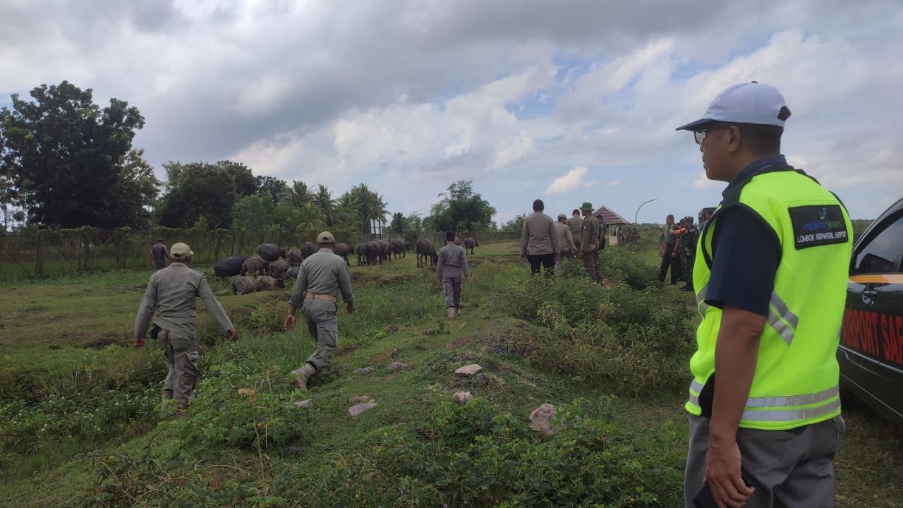 “Kegiatan penggembalaan kerbau di dalam pagar perimeter bandara ini selain membuat kotor lingkungan bandara, juga berpotensi mengganggu keselamatan dan keamanan operasional penerbangan,” ujar General Manager Bizam Lombok, Rahmat Adil Indrawan.