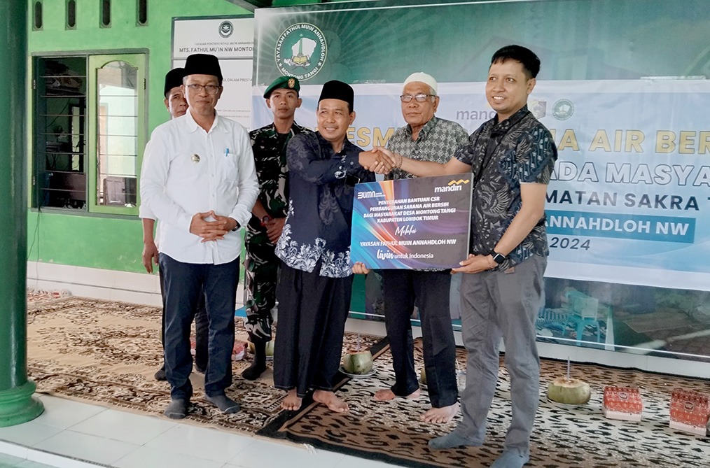 Sebelumnya, Ketua Yayasan Fathul Muin Annahdloh NW Montong Tangi, Hasanah Efendi, menyampaikan apresiasi dan ucapan terima kasih kepada Bank Mandiri telah memberikan bantuan sarana air bersih untuk masyarakat yang lokasinya di dalam komplek yayasan.