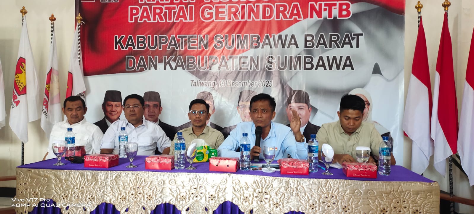 Untuk itu kehadirannya di Pulau Sumbawa untuk mendengarkan kesepakatan dan komitmen Kader Gerindra untuk memenangkan Prabowo -Gibran. Sebagai kader maka harus loyal kepada pimpinan, apapun yang menjadi hajat pimpinan kita pak Prabowo harus didukung secara maksimal all out. “Kemenangan Prabowo -Gibran bisa diraih manakala kita kompak dan bersemangat serta memastikan saksi saksi Partai sudah ada di setiap TPS,” ujarnya.